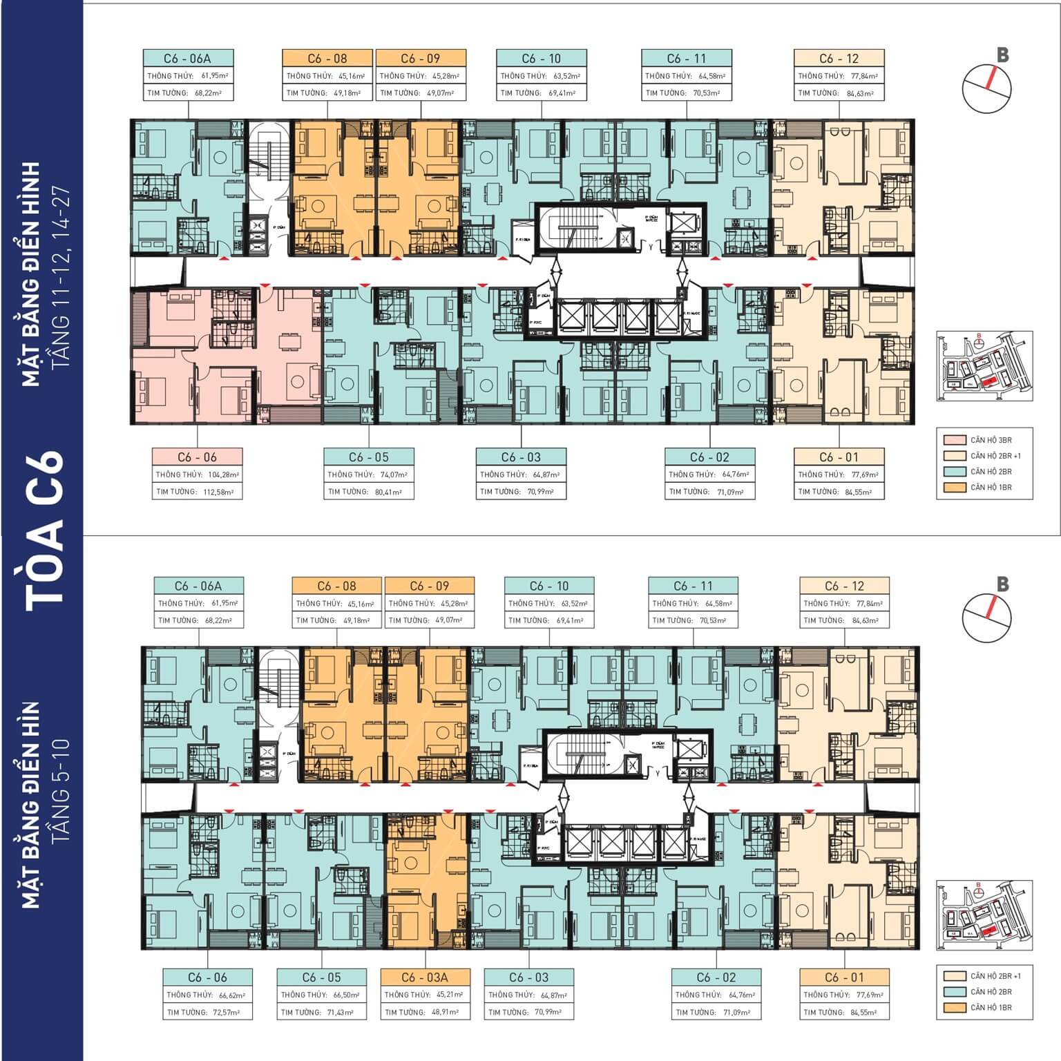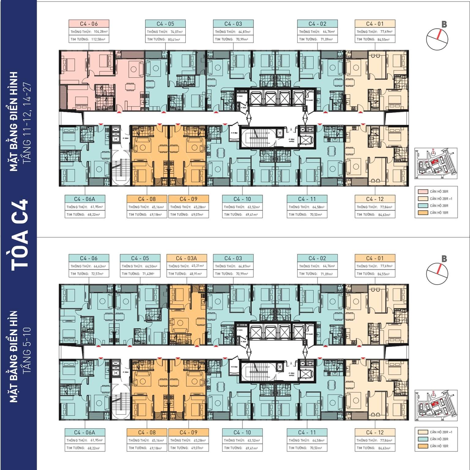 - Căn hộ 3 PN: Diện tích 91.49 m2 – 128.34 m2.