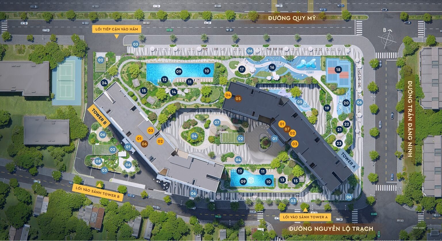 | Tiện ích: | Sân chơi trẻ em, công viên, sân thể thao, chòi thư giãn, trung tâm thương mại… |