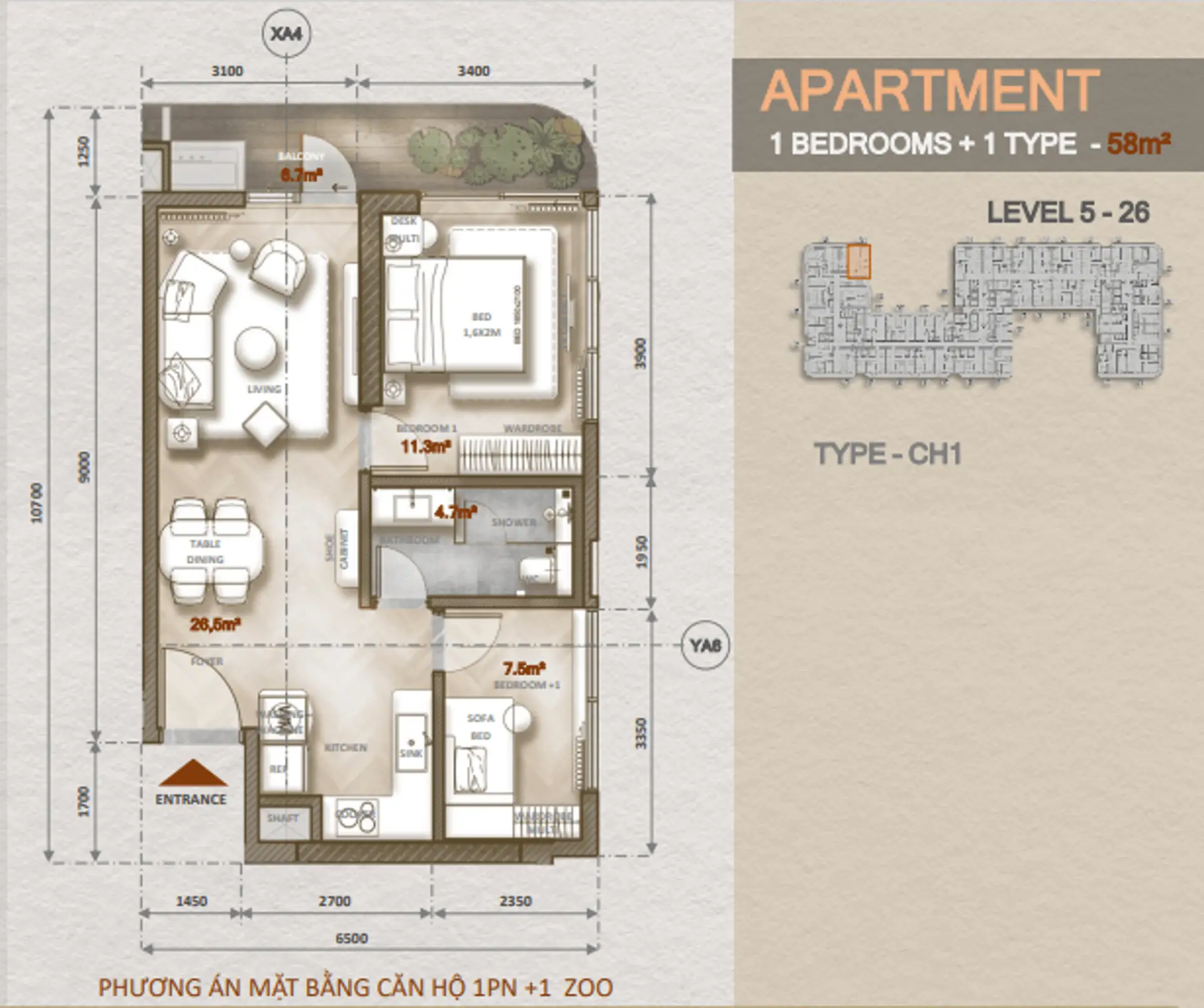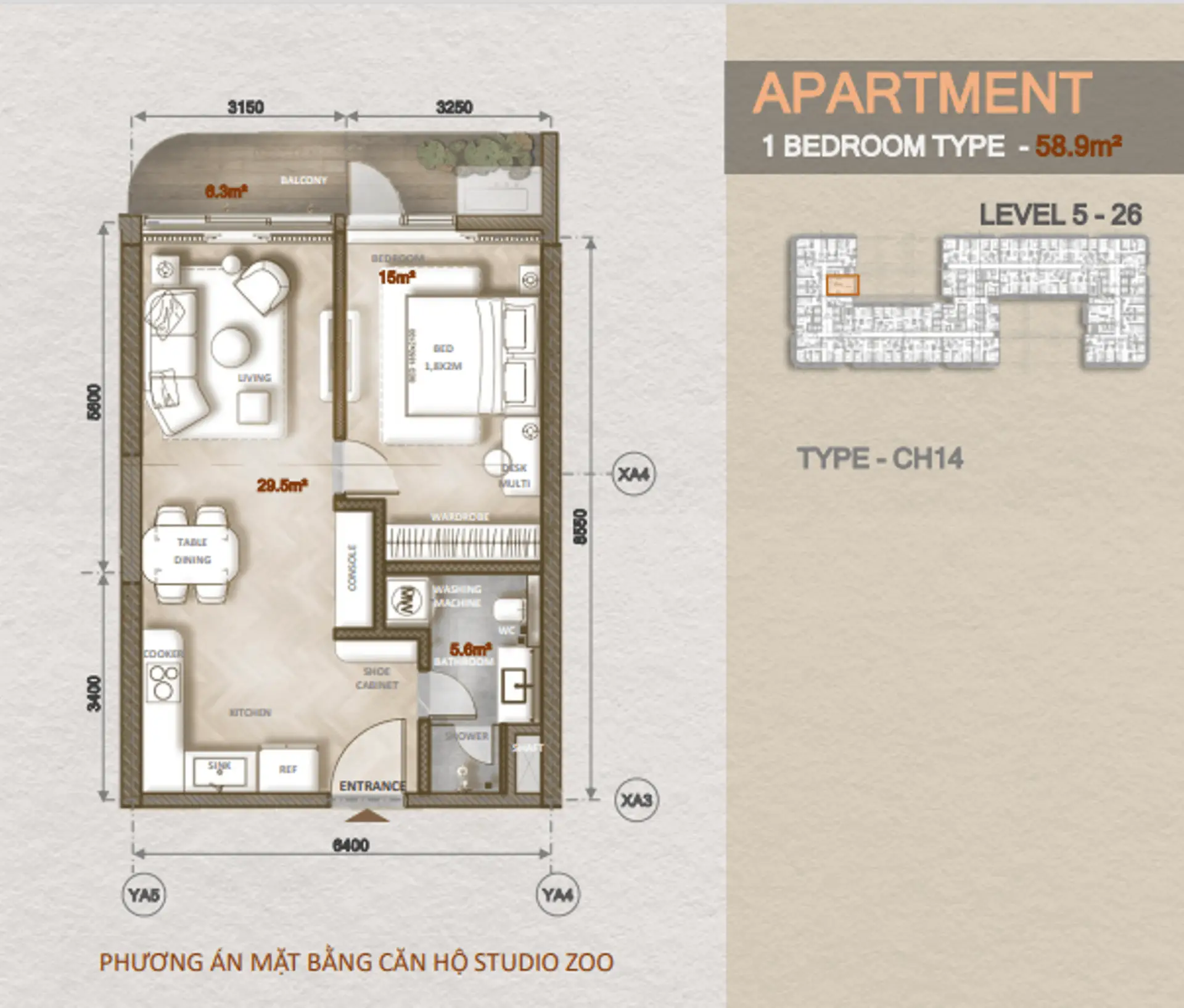 Căn hộ Studio Zoo (1 phòng ngủ)