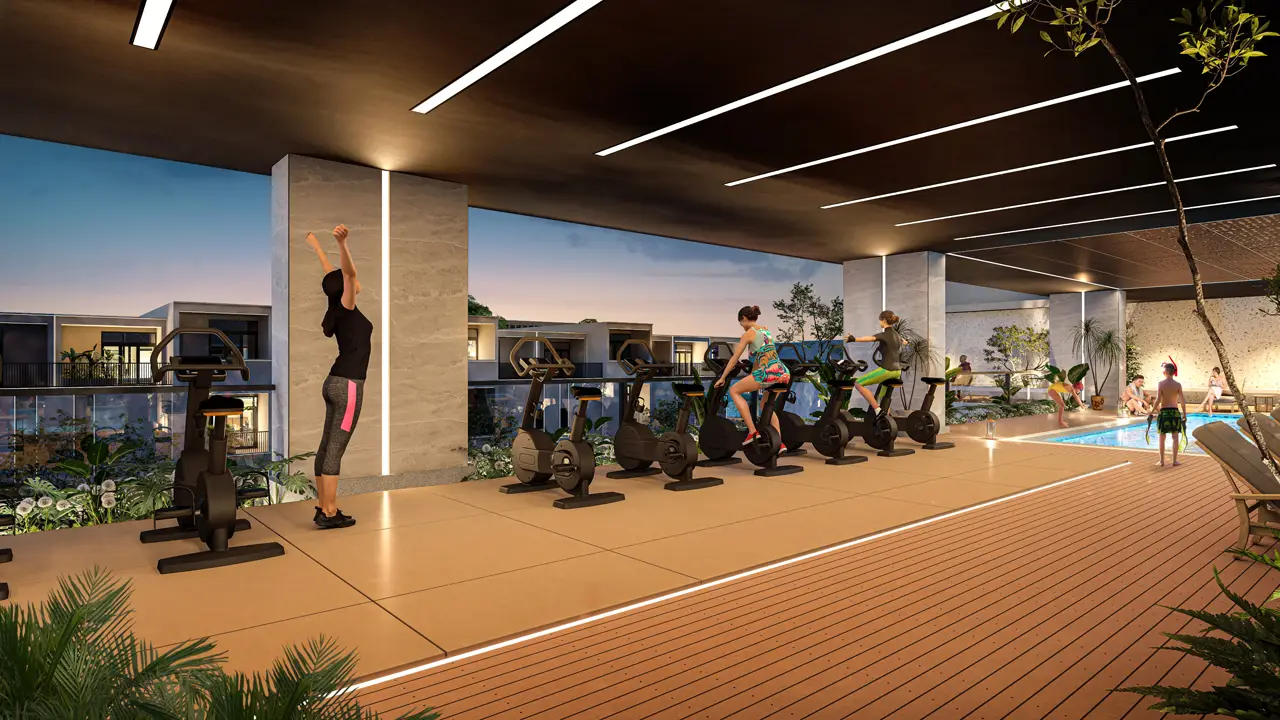 • Phòng gym: Trang thiết bị hiện đại, đầy đủ các dụng cụ tập luyện giúp cư dân rèn luyện sức khỏe.