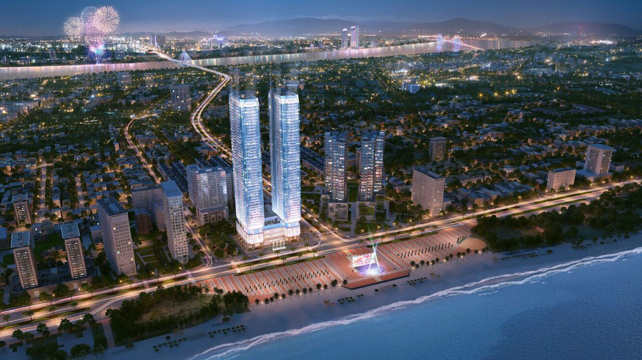 Mặt tiền của dự án Times Square đối diện ngay quảng trường và công viên biển Đông khu vực thường xuyên tổ chức các sự kiện của Đà Nẵng
