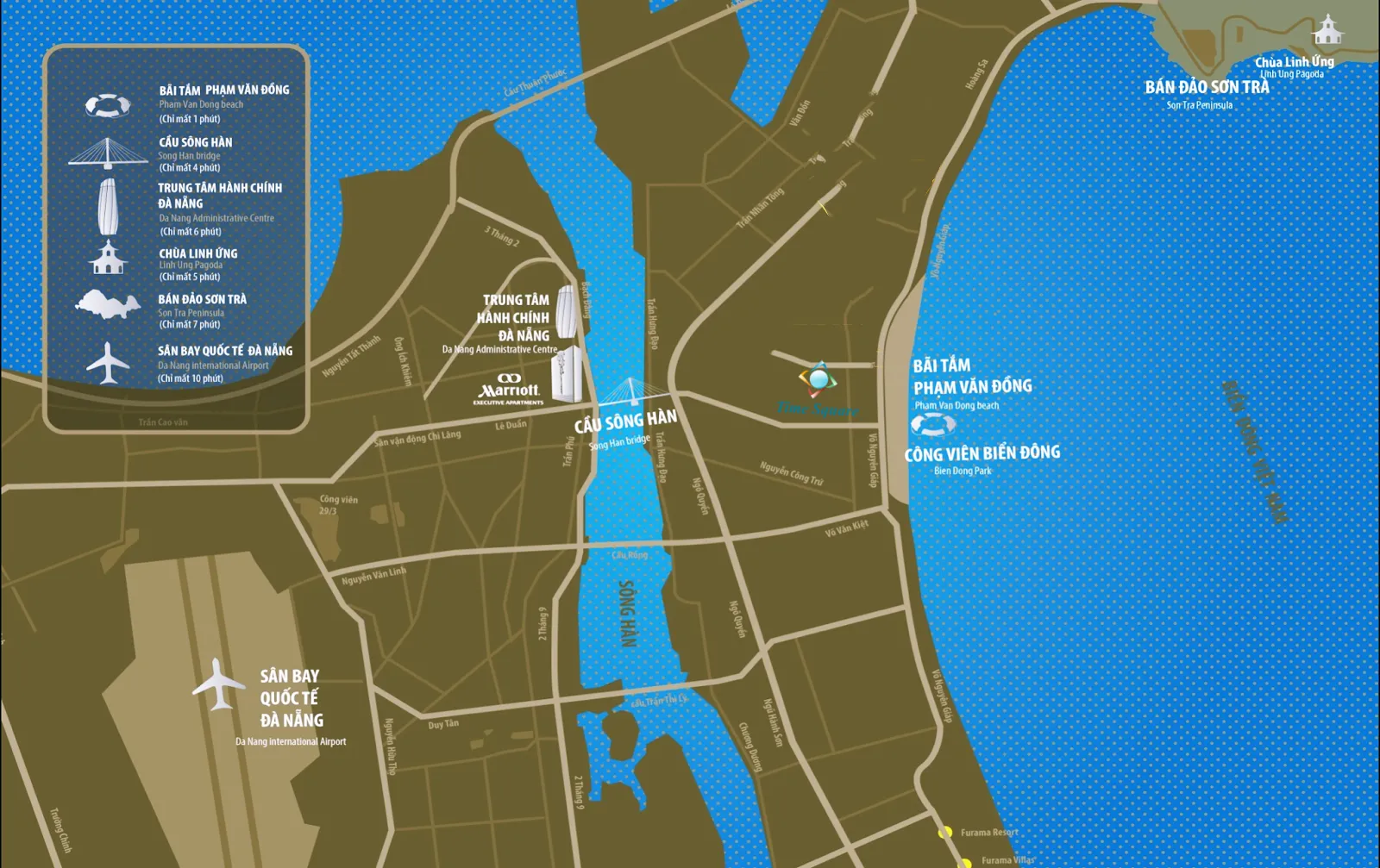 • Danh thắng gần: Ngũ Hành Sơn (9.8 km), Bán đảo Sơn Trà (18.5 km), Hội An (26.5 km), Bà Nà Hills (46.9 km)